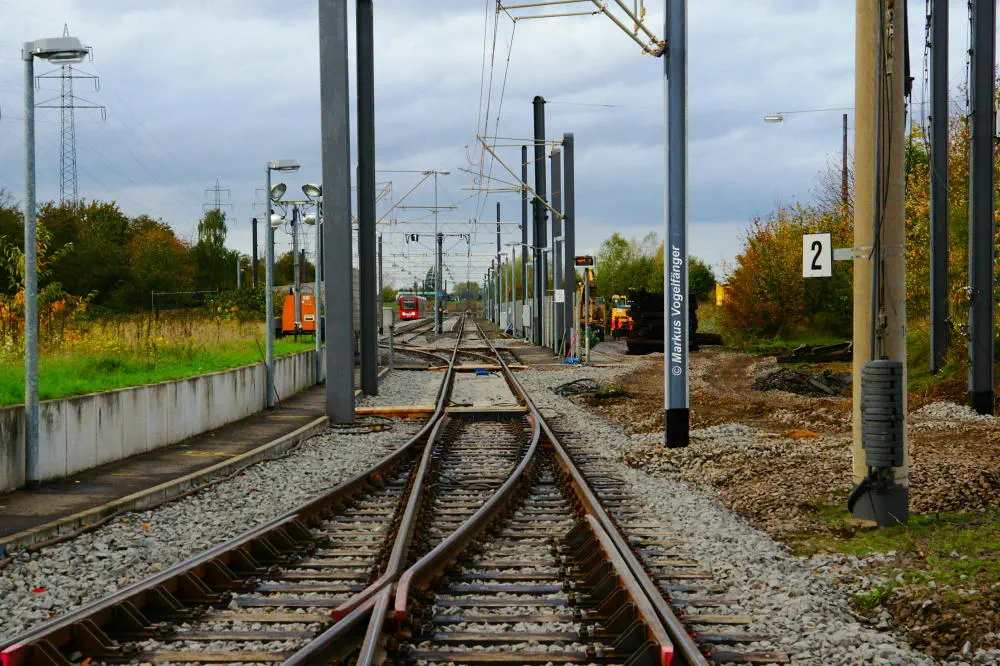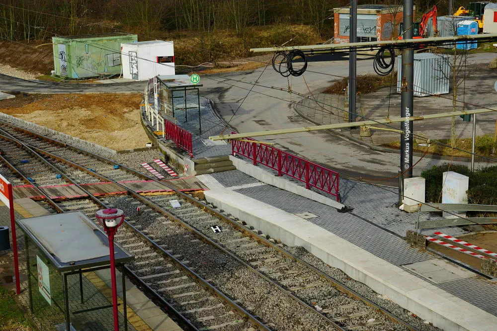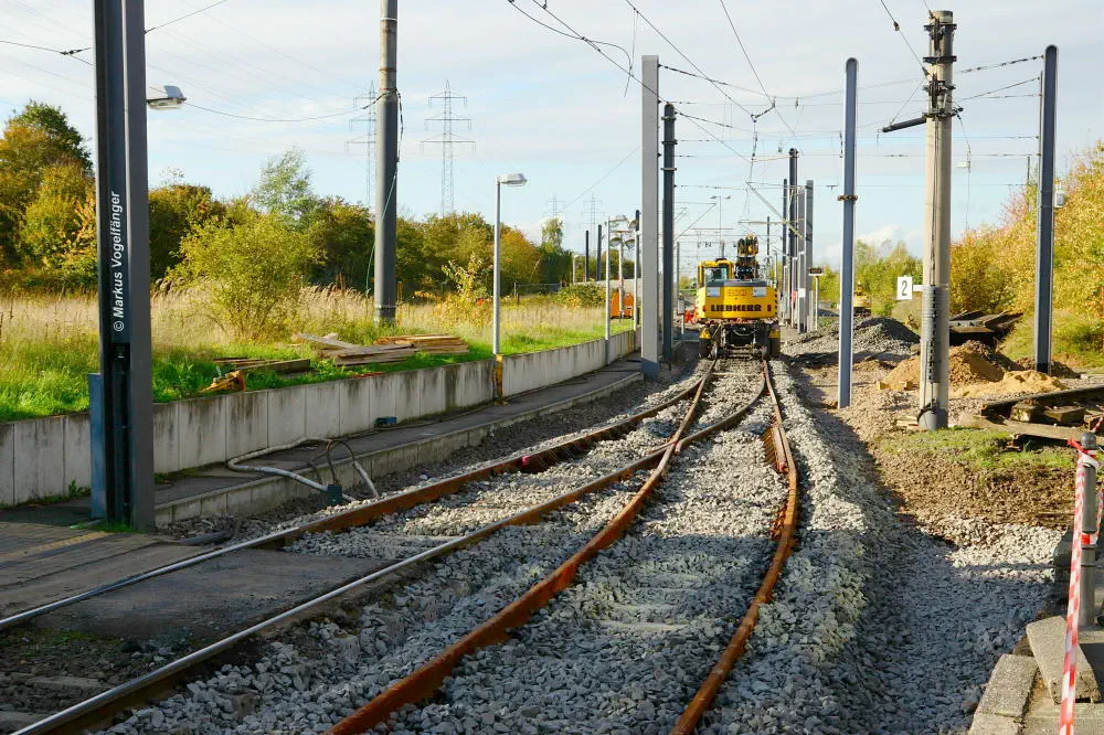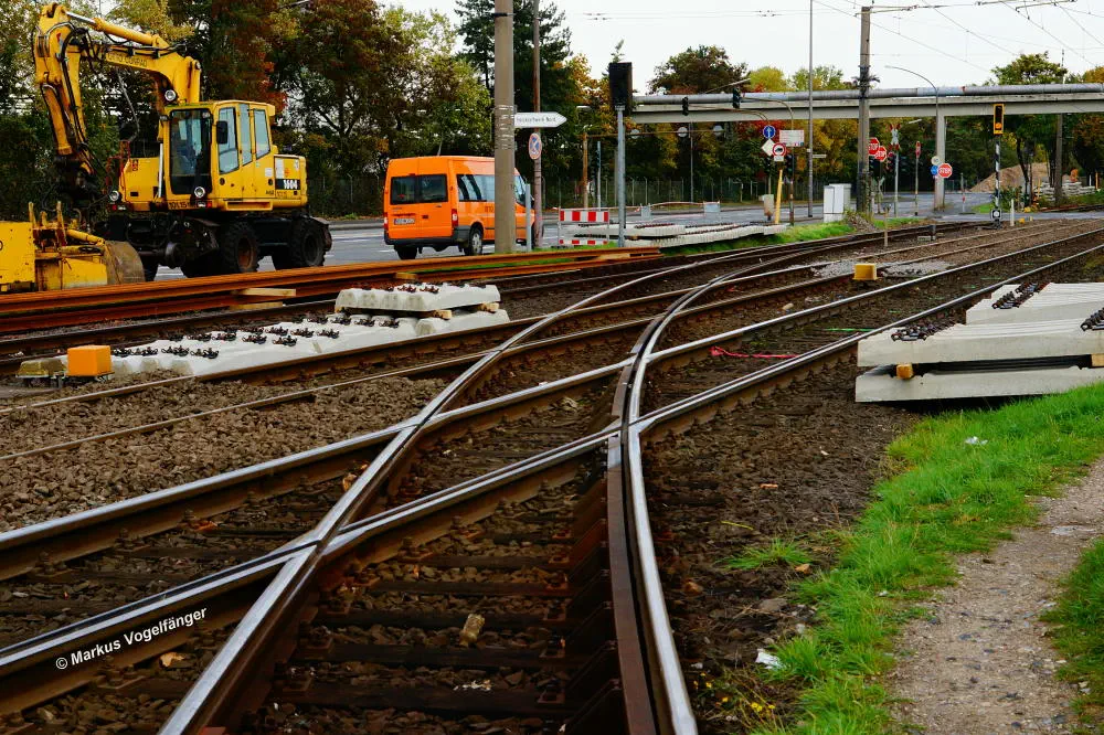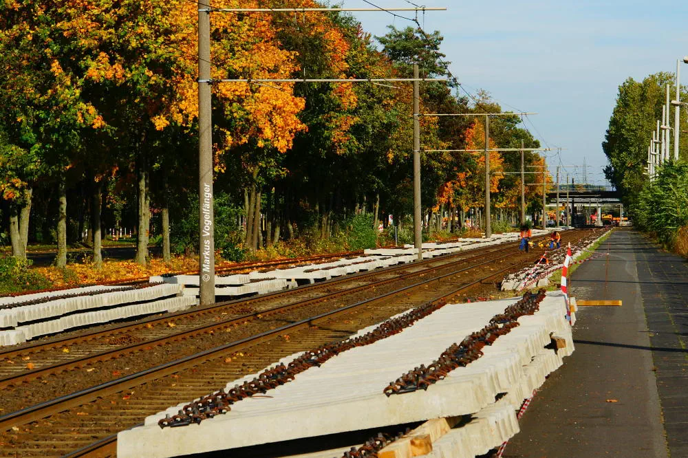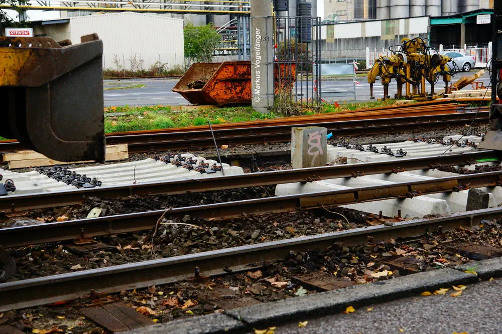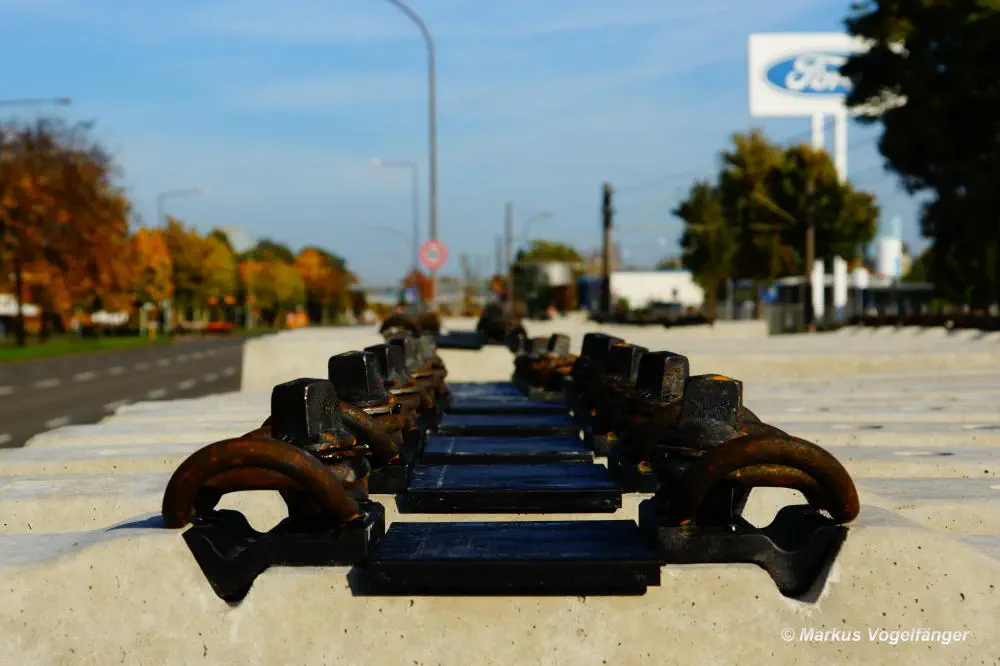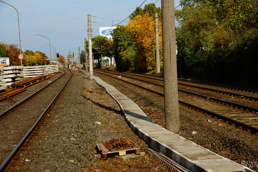 Die neuen Schwellen zwischen den Haltestellen Fordwerke Mitte und Fordwerke Nord.