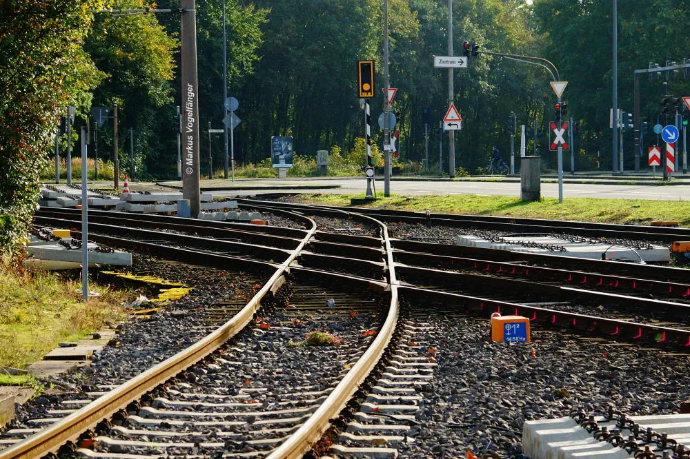 Die neuen Gleiskreuzungen auf der Emdener Straße.