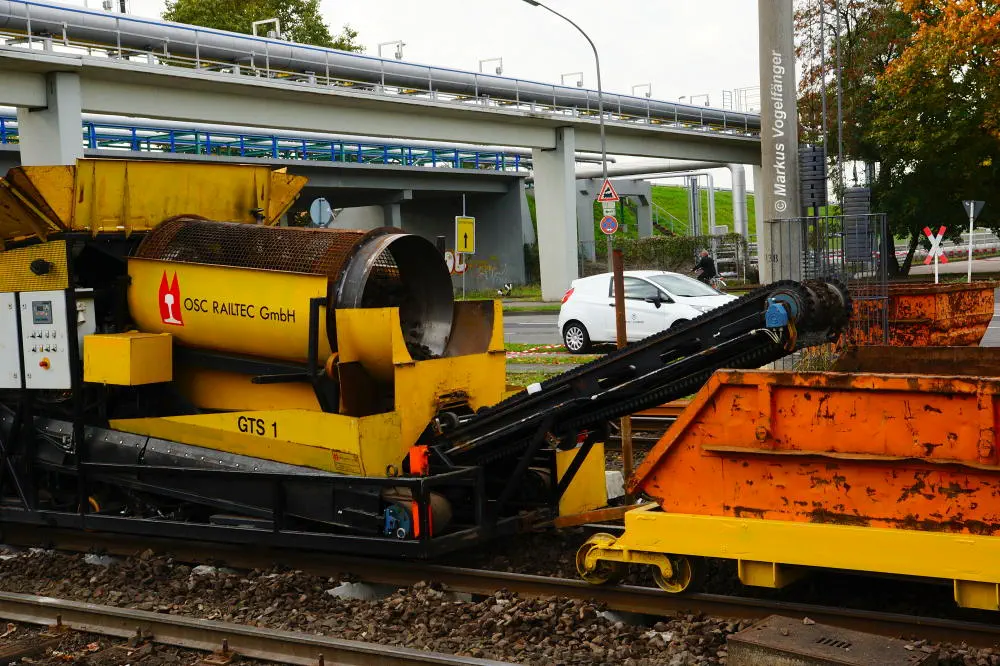Die Schotterreinigungsmaschine am 19.10.2013.