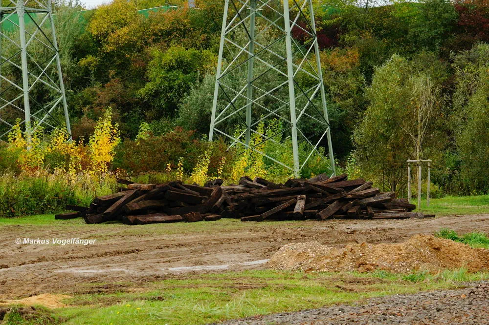 Provisorisch abgelegte alte Holzschwellen.