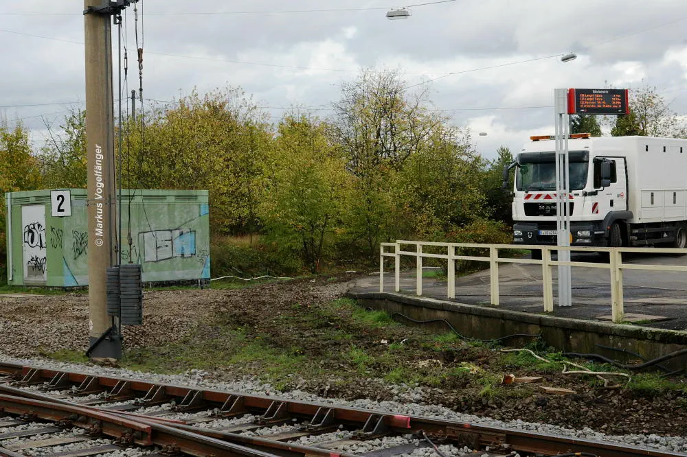 Das gesperrte Streckengleis Richtung Merkenich an der Haltestelle Niehl am 19.10.2013.