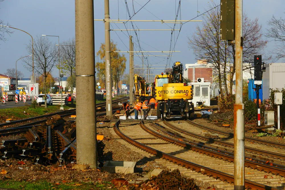 Gleistausch (rechts) auf der Emdener Straße am 16.11.2013.