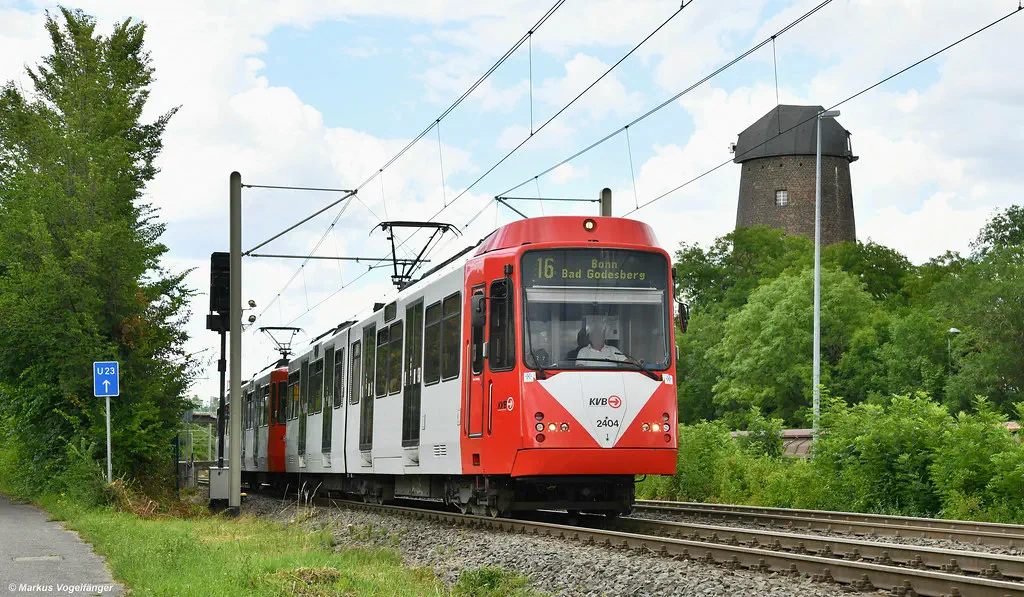 5126 wurde in die aktuellen KVB-Farben lackiert. Hier zu sehen auf dem Pfälzischen Ring am 16.07.2022.
