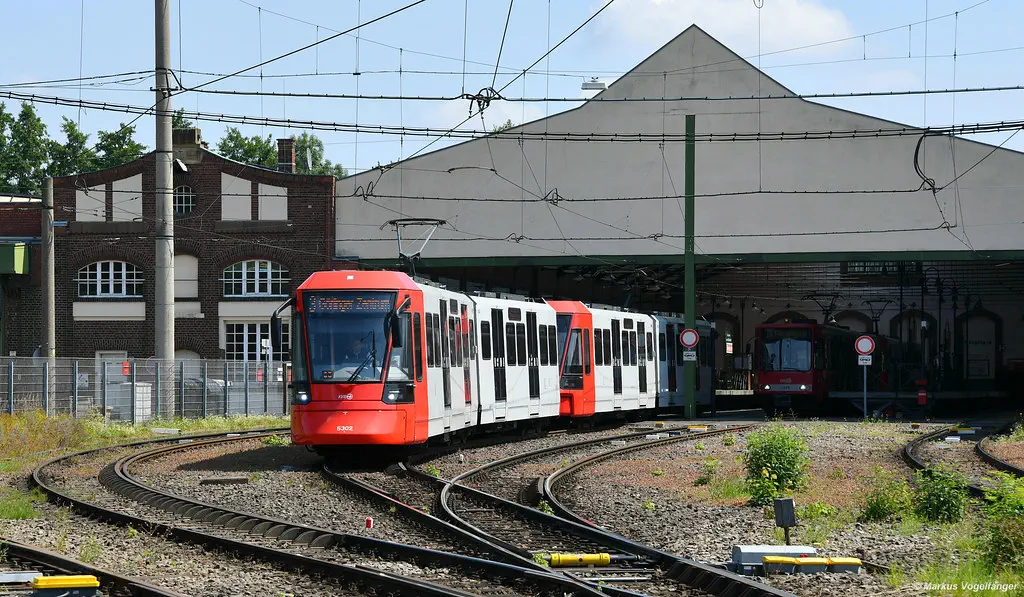 5148 wurde in die aktuellen KVB-Farben lackiert. Hier in Sürth am 28.06.2022.