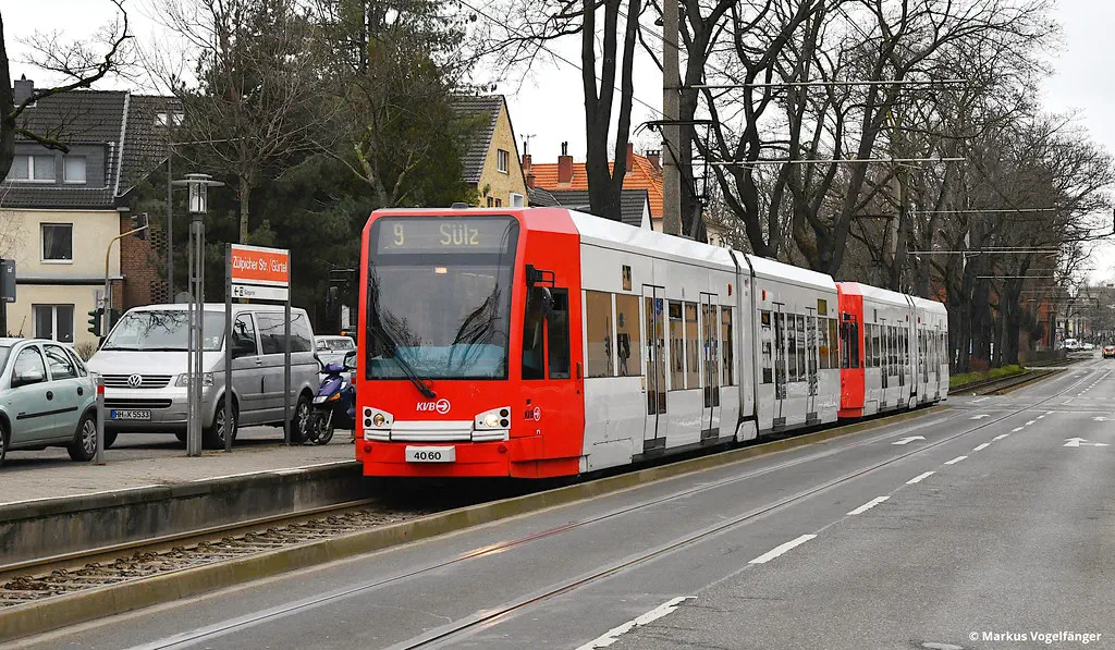 4110 auf der Kreuzung Zülpicher Str./Gürtel und 4060 an der Haltestelle Zülpicher Str./Gürtel am 04.03.2023. Noch bis zum 06.03. Betriebsbeginn wird die Linie 9 aufgrund von Arbeiten an der Eisenbahnbrücke auf Höhe der Haltestelle Dasselstraße über den Gürtel und die Aachener Straße umgeleitet.