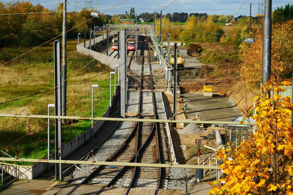 Die neuen Schwellen zwischen den Haltestellen Fordwerke Mitte und Fordwerke Nord.