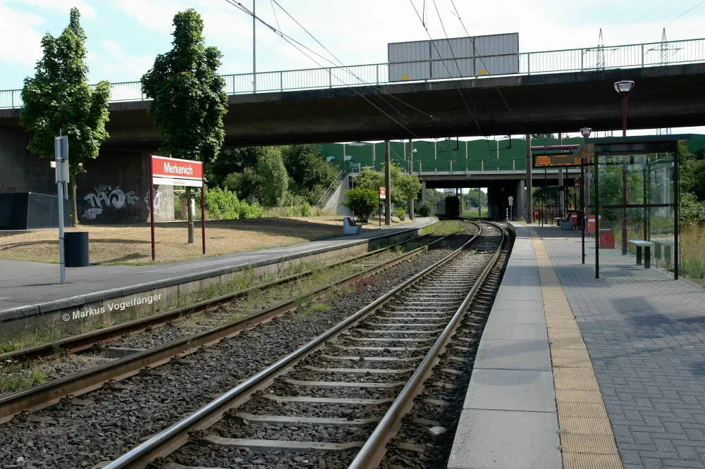 Die Ankunftshaltestelle Merkenich am 20.10.2013.