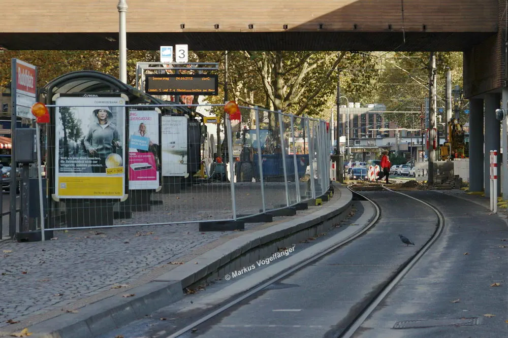 Aktueller Bauzustand an der Haltestelle Rudolfplatz (Richtung Moltkestraße) am 24.10.2013.
