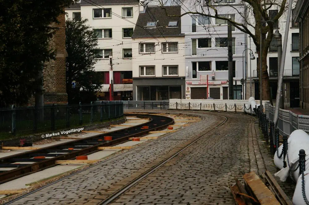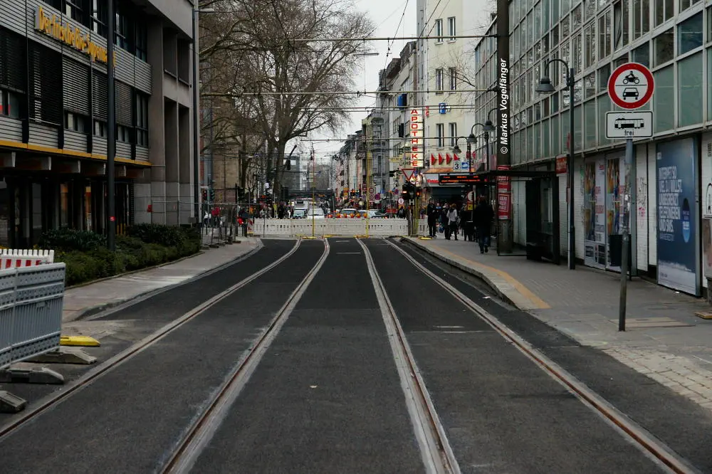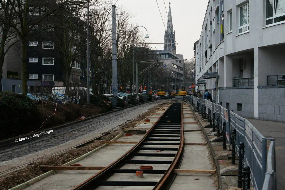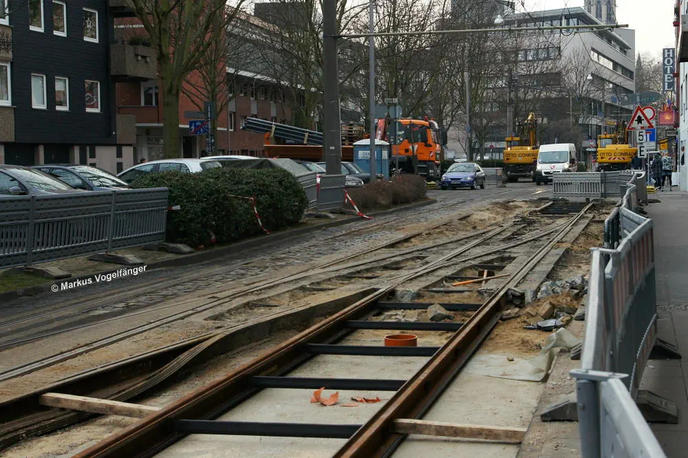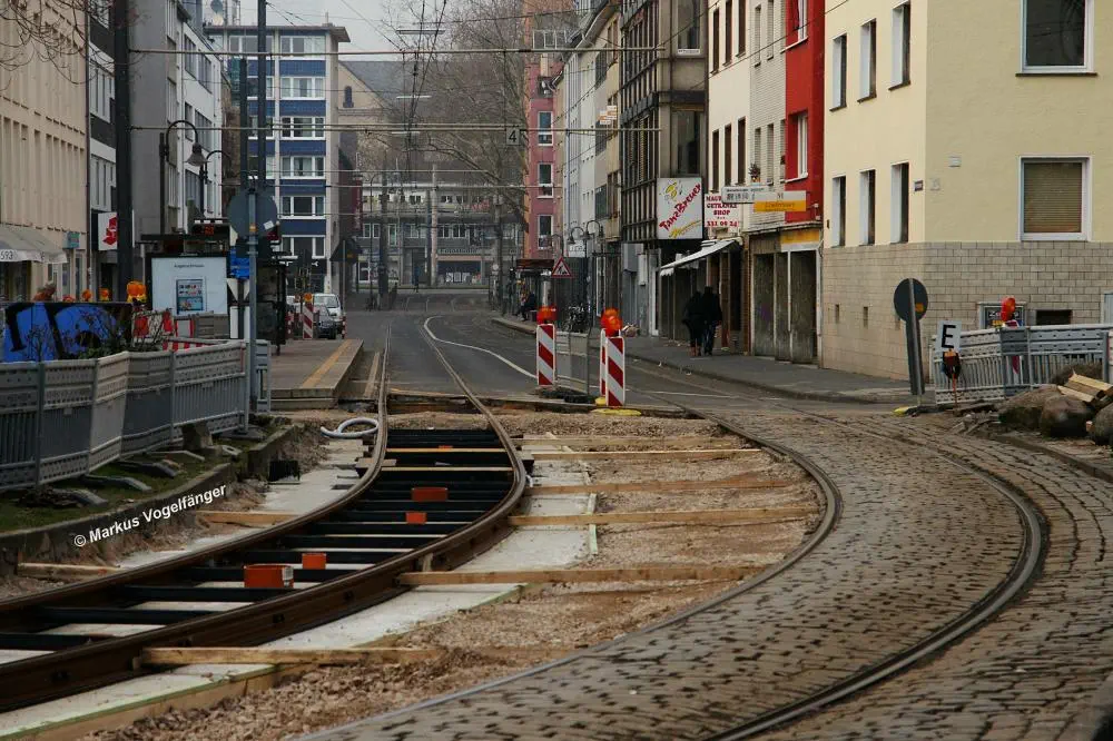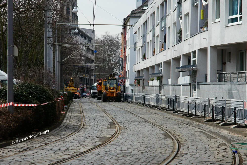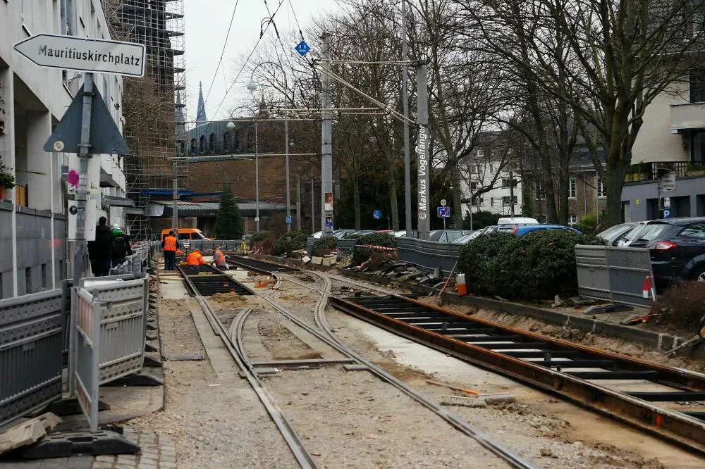 Zwischen den Haltestellen Zülpicher Platz und Mauritiuskirche werden seit diesem Wochenende (23.03.2013) die Gleise getauscht. Aus diesem Grund wird die Linie 9 bis zum 29.03.2013, sowie vom 02.04.2013 bis zum frühen Morgen des 08.04.2013 getrennt. Dabei wird die Strecke Sülz, Hermeskeiler Platz bis zur Universität, sowie der Abschnitt Königsforst bis zur Moltkestraße mit Stadtbahnen bedient. Den fehlenden Abschnitt übernehmen Ersatzbusse.