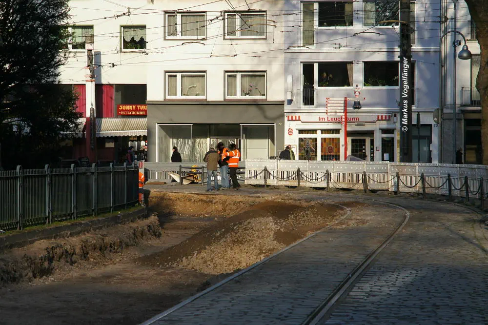 aktueller Bauzustand auf der Jahnstraße an der Haltestelle Zülpicher Platz am 29.03.2013.