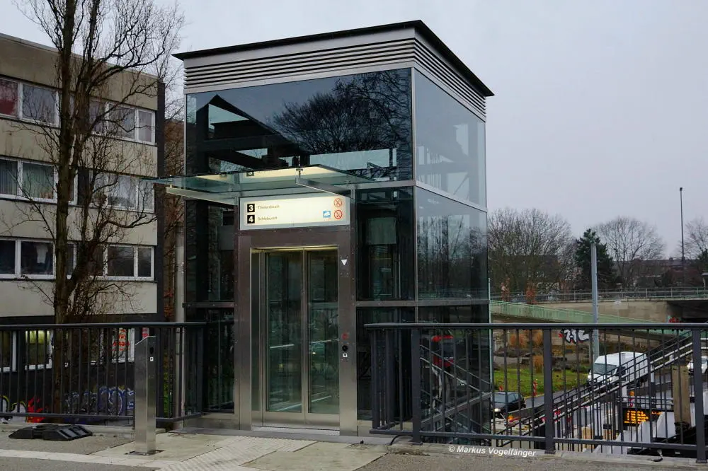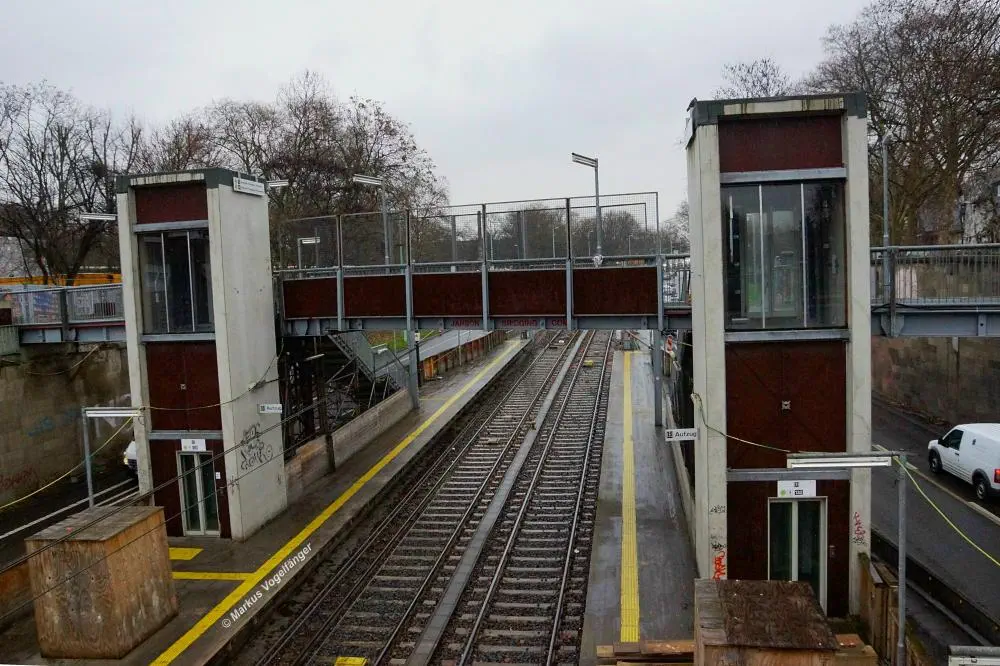Die Aufzüge und Treppenabgänge zur neuen oberirdischen Haltestelle