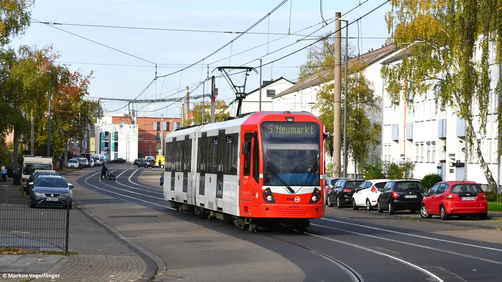 4110 wurde erneut in die aktuellen KVB-Farben lackiert. Hier auf der Neusser Straße am 28.10.2022.