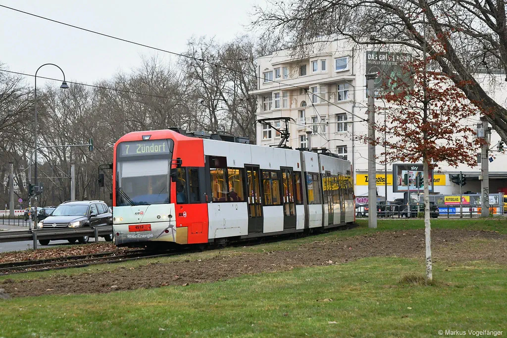 4557 befindet sich nach erfolgter Unfall-Reparatur wieder im Liniendienst. Während der Reparatur wurde das Fahrzeug in die aktuellen KVB-Farben lackiert. Bei dem Unfall stießen die Fahrzeuge 4557 und 4019 auf der Kreuzung Mauritiussteinweg/Hahnenstraße zusammen. 4019 befindet sich bereits seit August diesen Jahres zurück im Liniendienst. Auf dem Bild fährt 4557 auf der Aachener Straße zwischen den Haltestellen Eupener Straße und Alter Militärring als morgendlicher Verstärker der Linie 1 Richtung Junkersdorf am 22.12.2021.